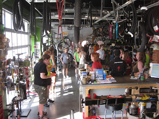After the big snow storm a few weeks ago, I didn't even have to scrape the snow from our car. The big accumulation started on Wednesday and it wasn't until Sunday that (preparing for the shop's Festivus party) I had to drive anywhere. I was getting around pretty flawlessly on my bicycle; equipped with studded tires, fenders, rack and basket, I was set! I even helped push a few cars out of snowbanks, truly. Then Sunday, bloody Sunday. I was in the 4-Runner for approximately 2 minutes and got stuck on an icy hill!!!! Oh the irony!!!! Later Vince asked if I had it in 4 wheel drive...and no...I didn't know how to use it. So there I sat, wheels spinning, laughing in disbelief that the hill I had easily climbed on my dang bicycle the previous 4 days in a row, was too much for the Toyota. I slowly backed down in defeat. So funny, yet sad. Made me love my snow bike even more!